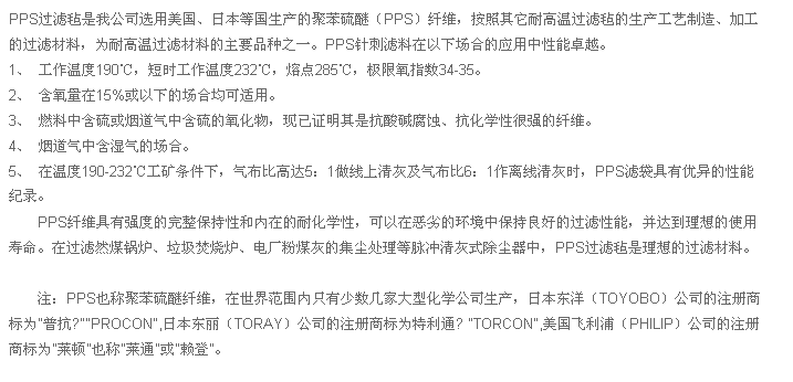 亞克力耐溫140~160℃,亞克力針刺氈采用進口纖維織造,是耐酸堿性和耐水解性好的中溫材料。